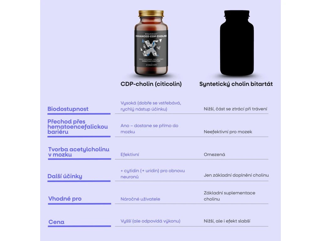 CDP-cholin vs. běžný syntetický cholin
