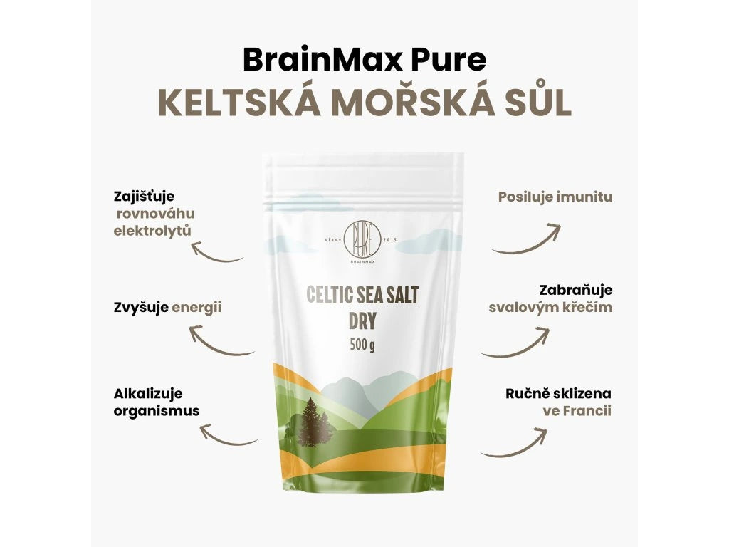 BrainMax Pure Celtic Sea Salt, Dry, Keltská mořská sůl, suchá, 500 g
