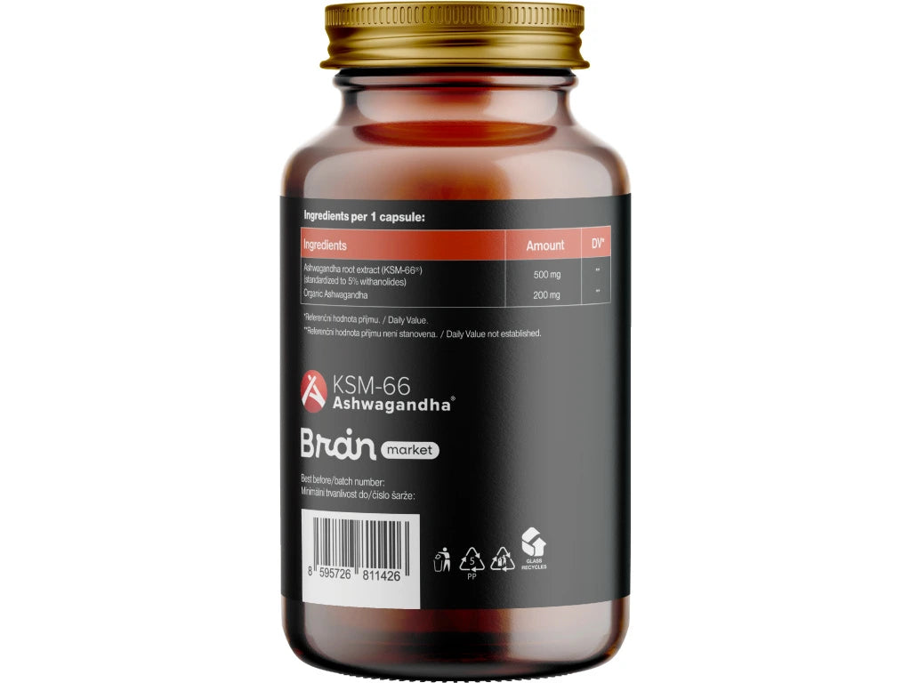 Ashwagandha, neboli vitánie snodárná, je jeden z nejuznávanějších adaptogenů ajurvédy. Tradičně se užívá pro podporu odolnosti vůči stresu, omlazení, spánek a normální funkci reprodukčního systému. Použitý extrakt KSM-66® je patentovaná forma, která je nejvíce klinicky studovanou ashwagandhou na trhu. Je standardizován na 5 % withanolidů což zaručuje vysokou kvalitu a účinnost.