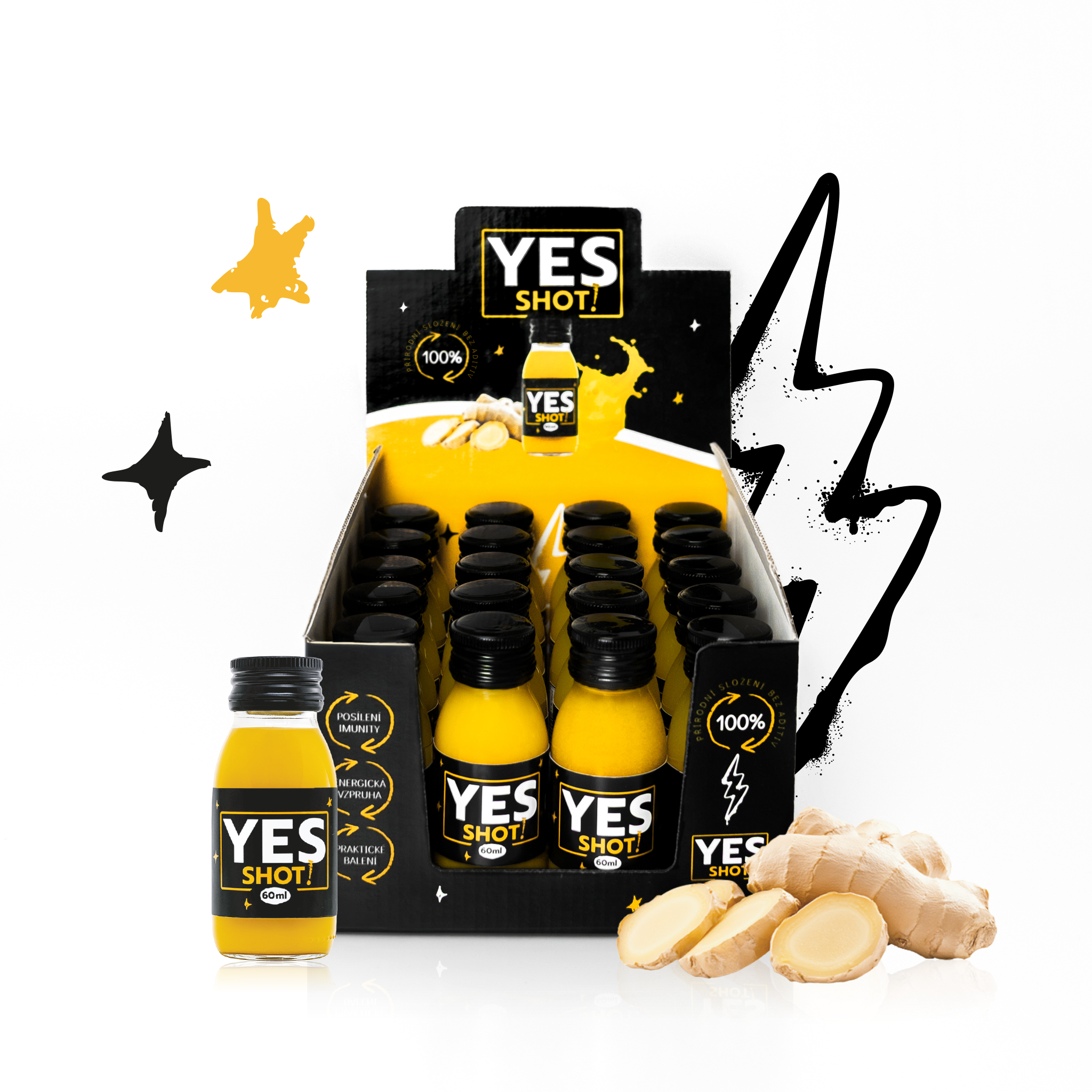 Dopřejte si každodenní zázvorový boost s balením 20 kusů Yes Shotů ve stylové krabici. Každé ráno jeden shot do kapsy nebo do kabelky a energie může začít proudit!⚡️