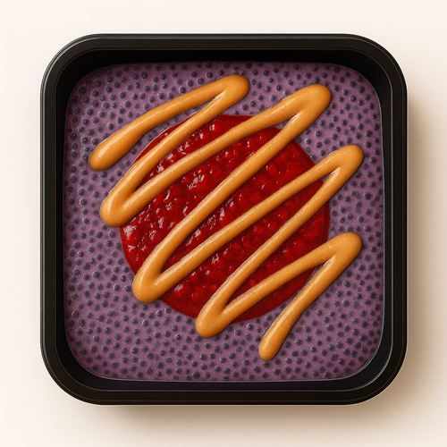 Borůvkový chia puding, malinový jam a arašídové máslo