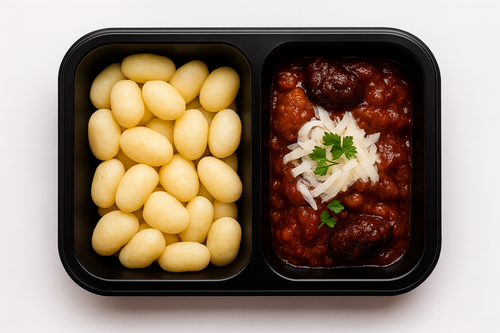 Bramborové noky s telecím ragú, Pecorino Romano a cibulovým džemem