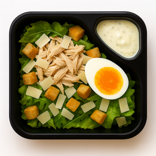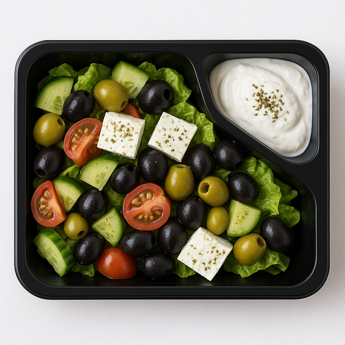 Řecký salát s olivami, salát baby gem, sýr labneh, oregano