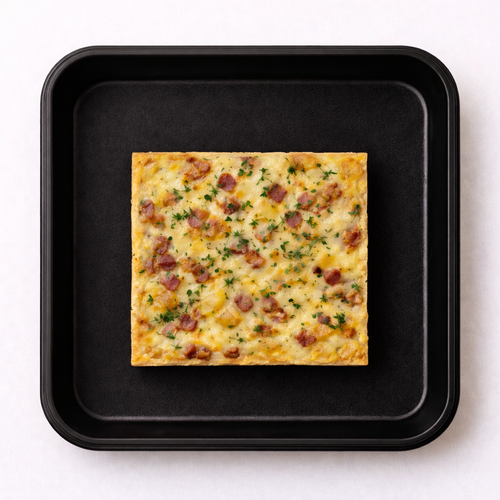 Vepřová líčka s omáčkou carbonara a pyré z černého kořene