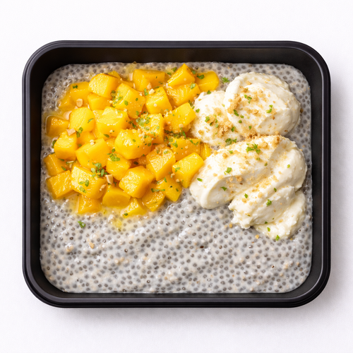 Kokosový chia puding, mango a vanilková ricotta