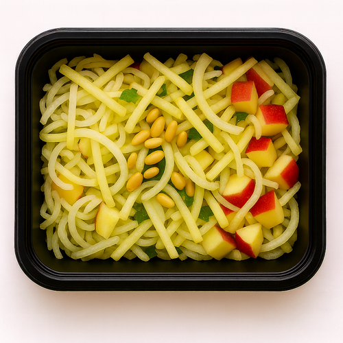 Křupavý salát z jablek, kedlubny, bílého zelí a piniových oříšků
