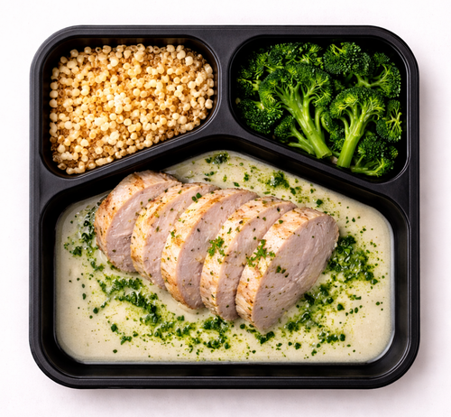 Krůtí prso s divokou brokolicí, omáčka z bílého vína, petrželkový olej