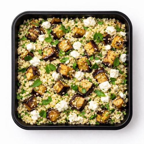 Kuřecí prso, omáčka ze sušených rajčat, špenát, bazalkový cottage, kuskus a feta