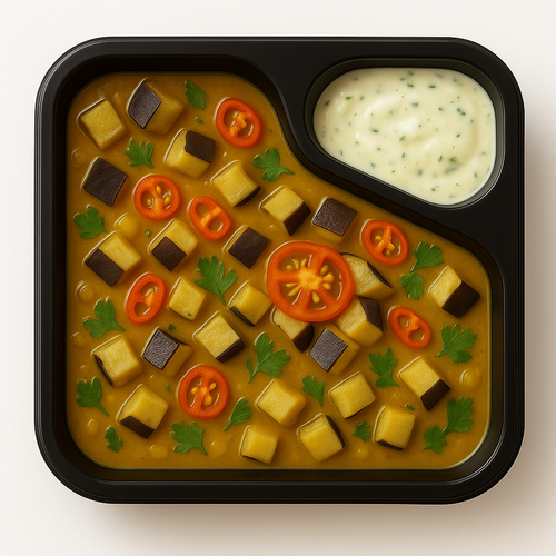 Lilkové curry s rajčaty a okurkovou raitou