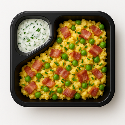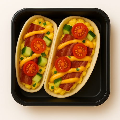 Snídaňové tacos s vejci, slaninou a okurkou, sýrový dip