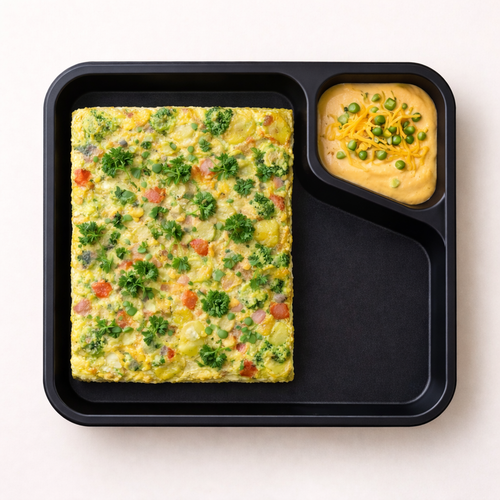 Španělská omeleta se zeleninou, dip z cheddaru a papriček jalapeňos