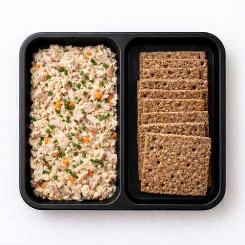 Pomazánka z tuňáka, karotky a cuket, žitné krekry