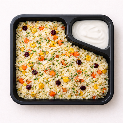 Rýžový pilaf s karotkou a paprikami, sýr provolone
