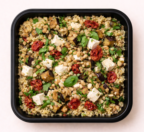 Krůtí karbanátek s cuketou, jogurtový dresink, sumac, grilovaná zelenina