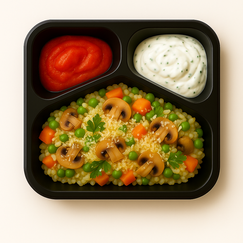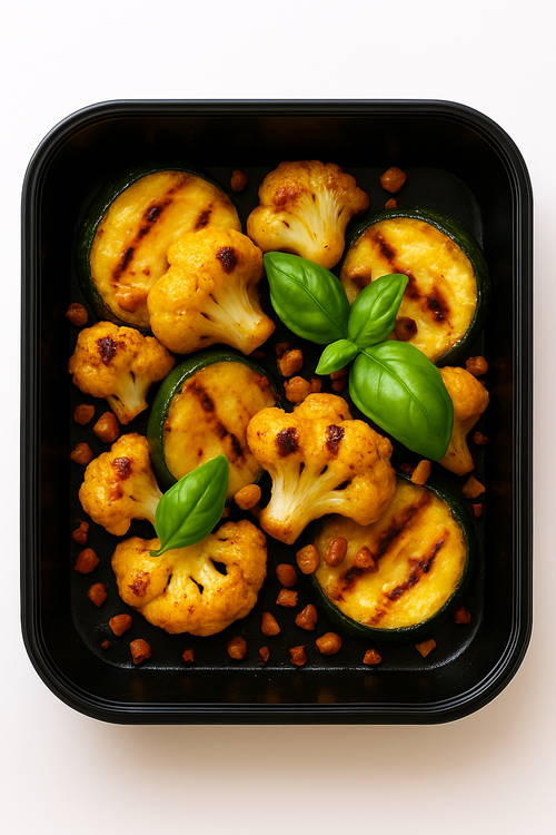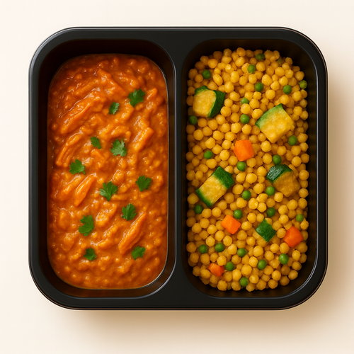 Trhané vepřové ramínko vindaloo, bulgur pilaf s brokolicí a cuketou