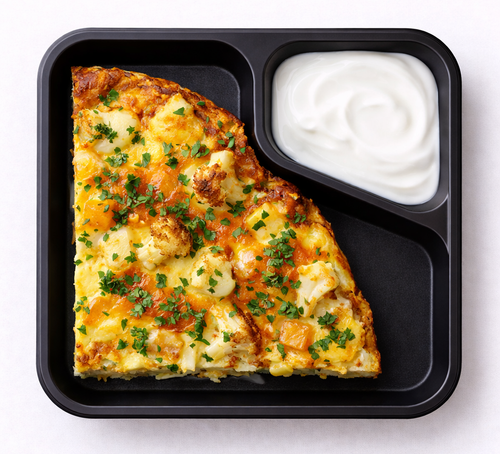 Zauzená fritáta s květákem, sýrem scamorza a zakysaná smetana